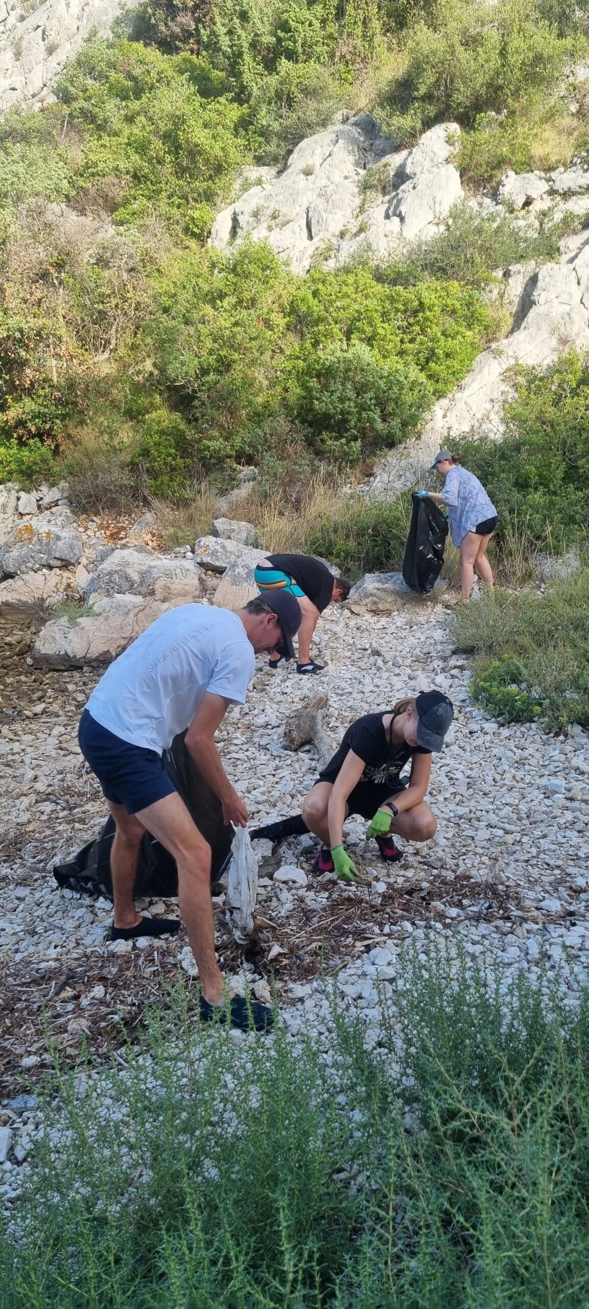 Beach Clean UpAnkern in einer Bucht. Wir schwärmen aus und sammeln Plastikmüll.